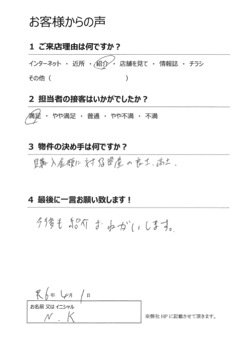 ご売却されるにあたり、お客様にご満足いただける結果となれたこと、とても嬉しく思います。
