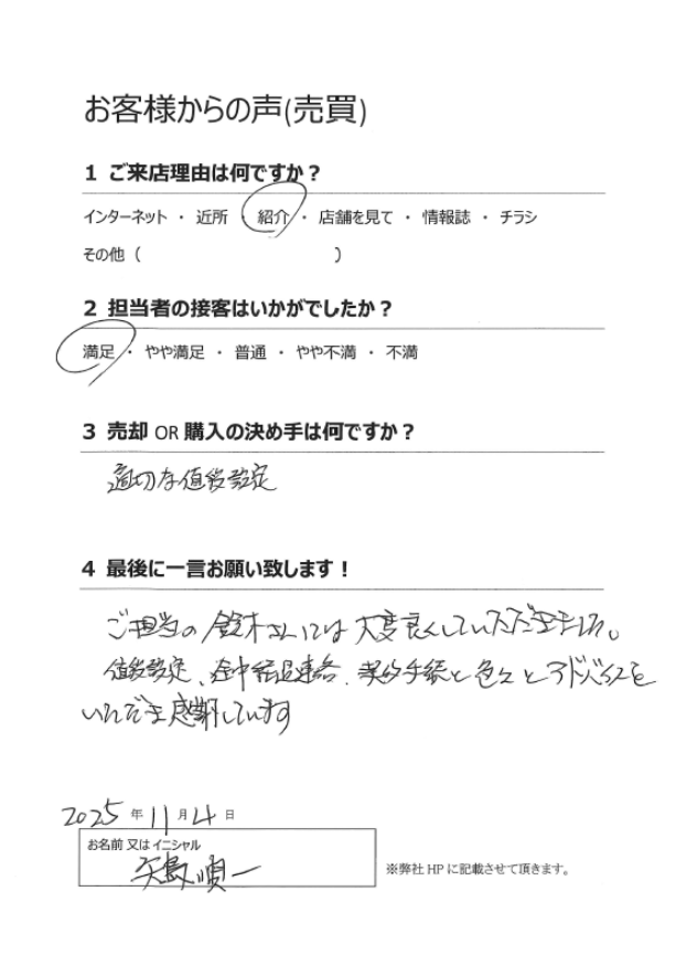 ご売却されるにあたり、お客様にご満足いただける結果となれたこと、とても嬉しく思います。